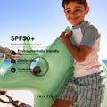 Our UV Shirts are made of 80% polyester and 20% elastane. This provides a perfect balance between comfort and flexibility, allowing your child to move freely.